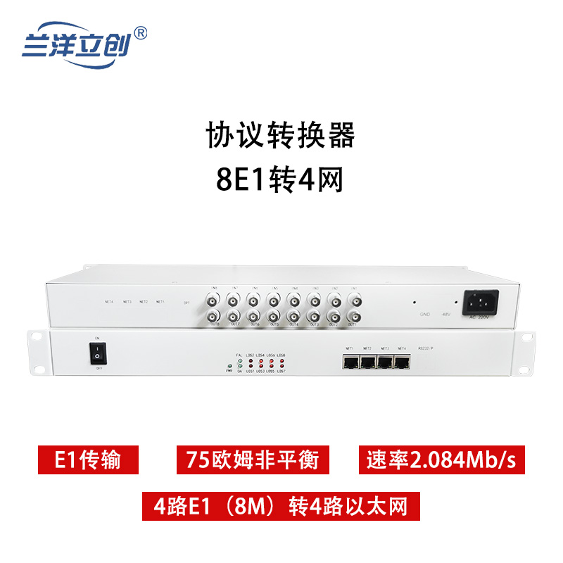 兰洋立创LY8E104协议转换器8E1转4网 1对